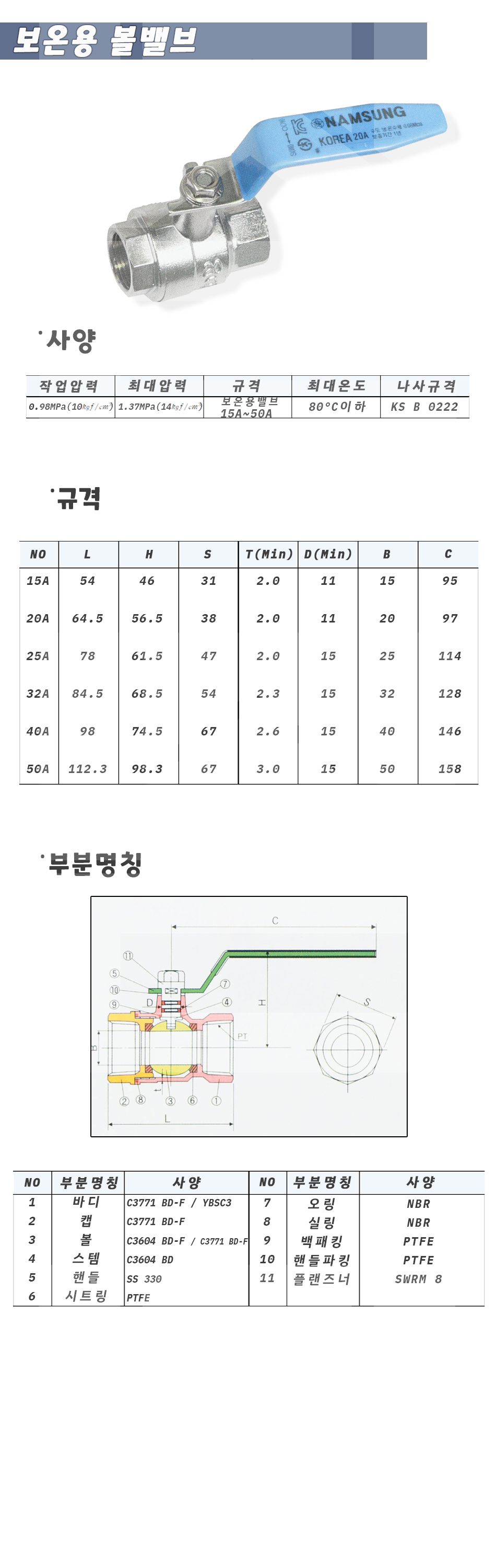 001-24-01-00000015 황동 보온볼밸브 판매가 12,700 ~ 원 배송방법 일반배송 브랜드 제조사 상품옵션 품명 옵션코드 규격 중량 판매단위 회원가 수량 황동 보온볼밸브 001-24-01-00000015 15A 0.3kg (270g) 0 12,700원 - + 황동 보온볼밸브 001-24-01-00000020 20A 0.2kg (240g) 0 18,300원 - + 황동 보온볼밸브 001-24-01-00000025 25A 0.6kg (550g) 0 27,000원 - + 황동 보온볼밸브 001-24-01-00000032 32A 0.6kg (580g) 0 39,900원 - + 황동 보온볼밸브 001-24-01-00000040 40A 1.3kg (1,260g) 0 59,100원 - + 황동 보온볼밸브 001-24-01-00000050 50A 1.3kg (1,260g) 0 81,800원 - + 총 상품 금액(VAT포함) 원 회원 / 비회원 구매하기 상품담기 제품상세정보 상품문의 (0) 배송 안내 반품/교환 안내 황동 보온 볼밸브 상품 문의하기 배송안내 배송 안내 일반제품 당일 1시 이전 주문시 재고 여부에 따라 당일발송 재고 부족시 2~3일 소요 파손위험제품 (화물택배/차량배송) 파손위험이 큰 제품은 빠렛트로 포장되어 차량으로 이동됩니다. 고객님이 지정한 장소와 가장 가까운 차량접근이 가능한 도로까지만 배송 주문물량 및 제품의 특성에 따라 화물, 화물택배. 합짐차량. 단독차량으로 고객님의 요청에 따라 운송 차량 지정 제품 하차시 파손이 있을 수 있으므로, 꼭 하차전 제품을 확인 고객센터 고객 센터 010-6539-7900 상담시간 오전 09시 ~ 오후 6시 점심 : 12:00 ~ 13:00 / 휴일 : 토, 일요일, 공휴일 반품/교환 안내 제품의 하자 및 오배송은 문의 주시면 즉시 처리해드리겠습니다. 반품/교환 판매자 지정택배사 : CJ대한통운 반품배송비(편도) : 3,000원 교환배송비(왕복) : 6,000원 보내실 곳 : 전라북도 전주시 완산구 콩쥐팥쥐로 1570 * 반품/교환 사유에 따른 요청 가능 기간 구매자 단순 변심 : 상품수령후 7일이내(구매자 반품 배송비 부담) 반품/교환 불가능 사유 교환/반품 요청 기간이 지난 경우 소비자의 책임 있는 사유로 상품 등이 분실/파손/훼손된 경우 소비자의 사용/소비에 의해 상품 등의 가치가 현저히 감소한 경우 제품을 설치 또는 장착하였을 경우 주문제작 상품중 상품제작에 들어간 경우 제품을 하차 또는 시공 후의 공정과정에서 일어난 파손의 경우 교환 반품시 고객 부담 배송비를 지불하지 아니한 경우 * 펌프제품은 미사용, 포장박스 미훼손 시에만 교환/반품이 가능합니다. 고객센터 고객 센터 010-6539-7900 상담시간 오전 09시 ~ 오후 6시 점심 : 12:00 ~ 13:00 / 휴일 : 토, 일요일, 공휴일