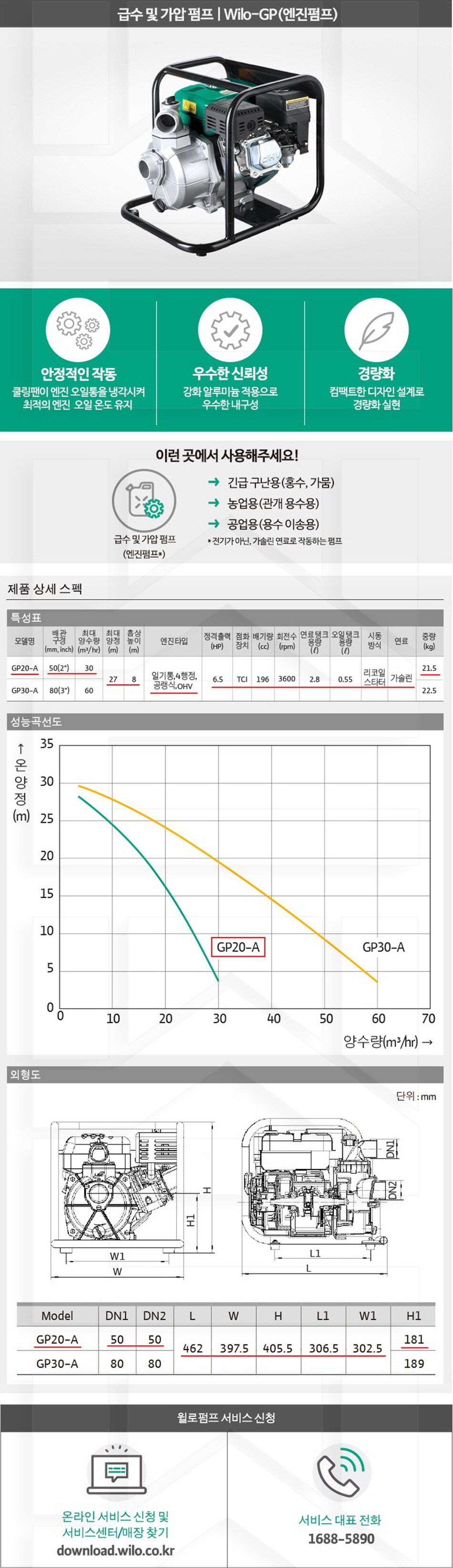 100-34-11-00002000 다목적용, 엔진펌프 GP20-A 판매가 327,000 ~ 원 배송방법 일반배송 브랜드 제조사 윌로펌프 주식회사 상품옵션 품명 옵션코드 규격 중량 판매단위 회원가 수량 GP20-A 100-34-11-00002000 50A 21.5kg (21,500g) 0 327,000원 - + GP30-A 100-34-11-00003000 80A 22.5kg (22,500g) 0 362,000원 - + 총 상품 금액(VAT포함) 원 회원 / 비회원 구매하기 상품담기 제품상세정보 상품문의 (0) 배송 안내 반품/교환 안내 급수 가압 펌프 엔진펌프 상품 문의하기 배송안내 배송 안내 일반제품 당일 1시 이전 주문시 재고 여부에 따라 당일발송 재고 부족시 2~3일 소요 파손위험제품 (화물택배/차량배송) 파손위험이 큰 제품은 빠렛트로 포장되어 차량으로 이동됩니다. 고객님이 지정한 장소와 가장 가까운 차량접근이 가능한 도로까지만 배송 주문물량 및 제품의 특성에 따라 화물, 화물택배. 합짐차량. 단독차량으로 고객님의 요청에 따라 운송 차량 지정 제품 하차시 파손이 있을 수 있으므로, 꼭 하차전 제품을 확인 고객센터 고객 센터 010-6539-7900 상담시간 오전 09시 ~ 오후 6시 점심 : 12:00 ~ 13:00 / 휴일 : 토, 일요일, 공휴일 반품/교환 안내 제품의 하자 및 오배송은 문의 주시면 즉시 처리해드리겠습니다. 반품/교환 판매자 지정택배사 : CJ대한통운 반품배송비(편도) : 3,000원 교환배송비(왕복) : 6,000원 보내실 곳 : 전라북도 전주시 완산구 콩쥐팥쥐로 1570 * 반품/교환 사유에 따른 요청 가능 기간 구매자 단순 변심 : 상품수령후 7일이내(구매자 반품 배송비 부담) 반품/교환 불가능 사유 교환/반품 요청 기간이 지난 경우 소비자의 책임 있는 사유로 상품 등이 분실/파손/훼손된 경우 소비자의 사용/소비에 의해 상품 등의 가치가 현저히 감소한 경우 제품을 설치 또는 장착하였을 경우 주문제작 상품중 상품제작에 들어간 경우 제품을 하차 또는 시공 후의 공정과정에서 일어난 파손의 경우 교환 반품시 고객 부담 배송비를 지불하지 아니한 경우 * 펌프제품은 미사용, 포장박스 미훼손 시에만 교환/반품이 가능합니다. 고객센터 고객 센터 010-6539-7900 상담시간 오전 09시 ~ 오후 6시 점심 : 12:00 ~ 13:00 / 휴일 : 토, 일요일, 공휴일