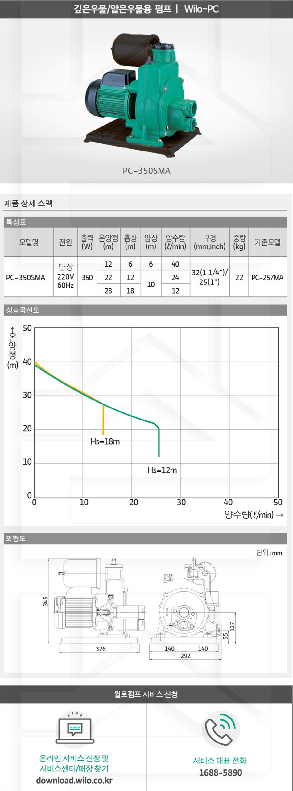 100-41-11-00000350 깊은우물용 소형탱크 PC-350SMA 판매가 296,000 원 배송방법 일반배송 브랜드 제조사 윌로펌프 주식회사 상품옵션 품명 옵션코드 규격 중량 판매단위 회원가 수량 PC-350SMA 100-41-11-00000350 32/25A 22.0kg (22,000g) 0 296,000원 - + 총 상품 금액(VAT포함) 원 회원 / 비회원 구매하기 상품담기 제품상세정보 상품문의 (0) 배송 안내 반품/교환 안내 깊은우물, 얕은우물용 펌프 상품 문의하기 배송안내 배송 안내 일반제품 당일 1시 이전 주문시 재고 여부에 따라 당일발송 재고 부족시 2~3일 소요 파손위험제품 (화물택배/차량배송) 파손위험이 큰 제품은 빠렛트로 포장되어 차량으로 이동됩니다. 고객님이 지정한 장소와 가장 가까운 차량접근이 가능한 도로까지만 배송 주문물량 및 제품의 특성에 따라 화물, 화물택배. 합짐차량. 단독차량으로 고객님의 요청에 따라 운송 차량 지정 제품 하차시 파손이 있을 수 있으므로, 꼭 하차전 제품을 확인 고객센터 고객 센터 010-6539-7900 상담시간 오전 09시 ~ 오후 6시 점심 : 12:00 ~ 13:00 / 휴일 : 토, 일요일, 공휴일 반품/교환 안내 제품의 하자 및 오배송은 문의 주시면 즉시 처리해드리겠습니다. 반품/교환 판매자 지정택배사 : CJ대한통운 반품배송비(편도) : 3,000원 교환배송비(왕복) : 6,000원 보내실 곳 : 전라북도 전주시 완산구 콩쥐팥쥐로 1570 * 반품/교환 사유에 따른 요청 가능 기간 구매자 단순 변심 : 상품수령후 7일이내(구매자 반품 배송비 부담) 반품/교환 불가능 사유 교환/반품 요청 기간이 지난 경우 소비자의 책임 있는 사유로 상품 등이 분실/파손/훼손된 경우 소비자의 사용/소비에 의해 상품 등의 가치가 현저히 감소한 경우 제품을 설치 또는 장착하였을 경우 주문제작 상품중 상품제작에 들어간 경우 제품을 하차 또는 시공 후의 공정과정에서 일어난 파손의 경우 교환 반품시 고객 부담 배송비를 지불하지 아니한 경우 * 펌프제품은 미사용, 포장박스 미훼손 시에만 교환/반품이 가능합니다. 고객센터 고객 센터 010-6539-7900 상담시간 오전 09시 ~ 오후 6시 점심 : 12:00 ~ 13:00 / 휴일 : 토, 일요일, 공휴일