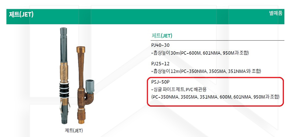 100-45-11-00005000 깊은우물용, 제트JET PSJ-50P 판매가 56,000 ~ 원 배송방법 일반배송 브랜드 제조사 윌로펌프 주식회사 상품옵션 품명 옵션코드 규격 중량 판매단위 회원가 수량 PJ25-12 100-45-11-00002512 350NMA,350SMA,351NMA 0.0kg (0g) 0 10,000원 - + PSJ-50P 100-45-11-00005000 0.0kg (0g) 0 56,000원 - + PJ40-30 100-45-11-00014030 600M,601NMA,950M 0.0kg (0g) 0 83,000원 - + 총 상품 금액(VAT포함) 원 회원 / 비회원 구매하기 상품담기 제품상세정보 상품문의 (0) 배송 안내 반품/교환 안내 제트 상품 문의하기 배송안내 배송 안내 일반제품 당일 1시 이전 주문시 재고 여부에 따라 당일발송 재고 부족시 2~3일 소요 파손위험제품 (화물택배/차량배송) 파손위험이 큰 제품은 빠렛트로 포장되어 차량으로 이동됩니다. 고객님이 지정한 장소와 가장 가까운 차량접근이 가능한 도로까지만 배송 주문물량 및 제품의 특성에 따라 화물, 화물택배. 합짐차량. 단독차량으로 고객님의 요청에 따라 운송 차량 지정 제품 하차시 파손이 있을 수 있으므로, 꼭 하차전 제품을 확인 고객센터 고객 센터 010-6539-7900 상담시간 오전 09시 ~ 오후 6시 점심 : 12:00 ~ 13:00 / 휴일 : 토, 일요일, 공휴일 반품/교환 안내 제품의 하자 및 오배송은 문의 주시면 즉시 처리해드리겠습니다. 반품/교환 판매자 지정택배사 : CJ대한통운 반품배송비(편도) : 3,000원 교환배송비(왕복) : 6,000원 보내실 곳 : 전라북도 전주시 완산구 콩쥐팥쥐로 1570 * 반품/교환 사유에 따른 요청 가능 기간 구매자 단순 변심 : 상품수령후 7일이내(구매자 반품 배송비 부담) 반품/교환 불가능 사유 교환/반품 요청 기간이 지난 경우 소비자의 책임 있는 사유로 상품 등이 분실/파손/훼손된 경우 소비자의 사용/소비에 의해 상품 등의 가치가 현저히 감소한 경우 제품을 설치 또는 장착하였을 경우 주문제작 상품중 상품제작에 들어간 경우 제품을 하차 또는 시공 후의 공정과정에서 일어난 파손의 경우 교환 반품시 고객 부담 배송비를 지불하지 아니한 경우 * 펌프제품은 미사용, 포장박스 미훼손 시에만 교환/반품이 가능합니다. 고객센터 고객 센터 010-6539-7900 상담시간 오전 09시 ~ 오후 6시 점심 : 12:00 ~ 13:00 / 휴일 : 토, 일요일, 공휴일