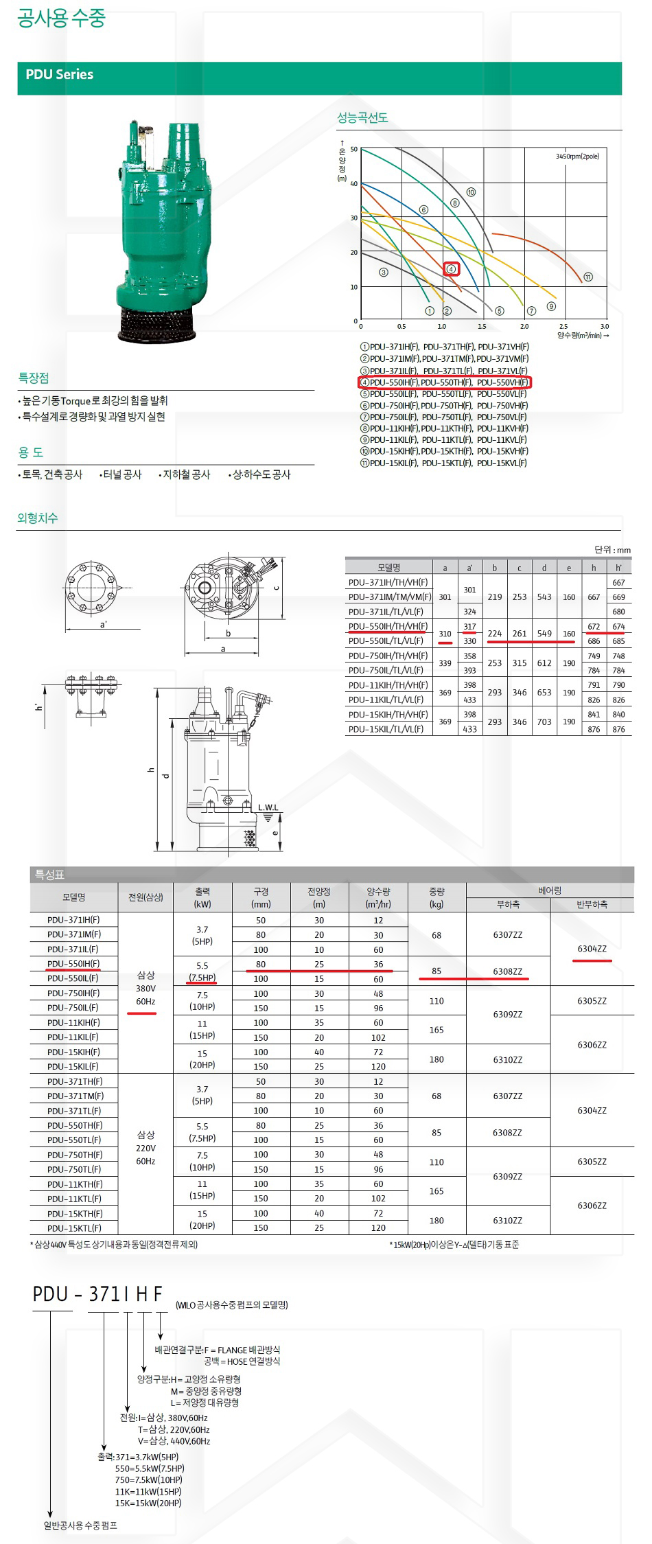 100-71-12-00000550 공사용수중 삼상380 고양정소유량 PDU-550IH 판매가 1,504,000 ~ 원 배송방법 일반배송 브랜드 제조사 윌로펌프 주식회사 상품옵션 품명 옵션코드 규격 중량 판매단위 회원가 수량 PDU-371IH 100-71-12-00000371 50A 68.0kg (68,000g) 0 1,138,000원 - + PDU-550IH 100-71-12-00000550 80A 85.0kg (85,000g) 0 1,504,000원 - + PDU-750IH 100-71-12-00000750 100A 110.0kg (110,000g) 0 1,922,000원 - + PDU-11KIH 100-71-12-00110000 100A 165.0kg (165,000g) 0 2,552,000원 - + PDU-15KIH 100-71-12-00150000 100A 180.0kg (180,000g) 0 3,062,000원 - + 총 상품 금액(VAT포함) 원 회원 / 비회원 구매하기 상품담기 제품상세정보 상품문의 (0) 배송 안내 반품/교환 안내 공사용 수중 펌프 상품 문의하기 배송안내 배송 안내 일반제품 당일 1시 이전 주문시 재고 여부에 따라 당일발송 재고 부족시 2~3일 소요 파손위험제품 (화물택배/차량배송) 파손위험이 큰 제품은 빠렛트로 포장되어 차량으로 이동됩니다. 고객님이 지정한 장소와 가장 가까운 차량접근이 가능한 도로까지만 배송 주문물량 및 제품의 특성에 따라 화물, 화물택배. 합짐차량. 단독차량으로 고객님의 요청에 따라 운송 차량 지정 제품 하차시 파손이 있을 수 있으므로, 꼭 하차전 제품을 확인 고객센터 고객 센터 010-6539-7900 상담시간 오전 09시 ~ 오후 6시 점심 : 12:00 ~ 13:00 / 휴일 : 토, 일요일, 공휴일 반품/교환 안내 제품의 하자 및 오배송은 문의 주시면 즉시 처리해드리겠습니다. 반품/교환 판매자 지정택배사 : CJ대한통운 반품배송비(편도) : 3,000원 교환배송비(왕복) : 6,000원 보내실 곳 : 전라북도 전주시 완산구 콩쥐팥쥐로 1570 * 반품/교환 사유에 따른 요청 가능 기간 구매자 단순 변심 : 상품수령후 7일이내(구매자 반품 배송비 부담) 반품/교환 불가능 사유 교환/반품 요청 기간이 지난 경우 소비자의 책임 있는 사유로 상품 등이 분실/파손/훼손된 경우 소비자의 사용/소비에 의해 상품 등의 가치가 현저히 감소한 경우 제품을 설치 또는 장착하였을 경우 주문제작 상품중 상품제작에 들어간 경우 제품을 하차 또는 시공 후의 공정과정에서 일어난 파손의 경우 교환 반품시 고객 부담 배송비를 지불하지 아니한 경우 * 펌프제품은 미사용, 포장박스 미훼손 시에만 교환/반품이 가능합니다. 고객센터 고객 센터 010-6539-7900 상담시간 오전 09시 ~ 오후 6시 점심 : 12:00 ~ 13:00 / 휴일 : 토, 일요일, 공휴일