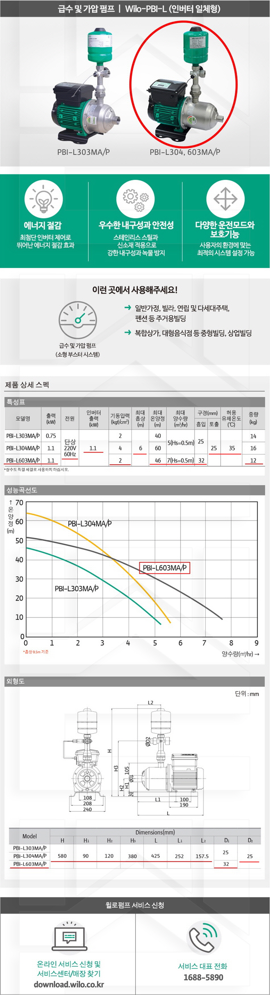 101-32-13-00000603 자흡식 인버터 펌프 PBI-L603MA/P (1.1W) 판매가 1,046,000 ~ 원 배송방법 일반배송 브랜드 제조사 윌로펌프 주식회사 상품옵션 품명 옵션코드 규격 중량 판매단위 회원가 수량 PBI-L303MA/P (0.75W) 101-32-13-00000303 25A 14.0kg (14,000g) 0 996,000원 - + PBI-L304MA/P (1.1W) 101-32-13-00000304 25A 16.0kg (16,000g) 0 1,046,000원 - + PBI-L603MA/P (1.1W) 101-32-13-00000603 32/25A 12.0kg (12,000g) 0 1,046,000원 - + PBI-L991MA/P (1.5W) 101-32-13-00000991 40/32A 19.0kg (19,000g) 0 1,229,000원 - + 총 상품 금액(VAT포함) 원 회원 / 비회원 구매하기 상품담기 제품상세정보 상품문의 (0) 배송 안내 반품/교환 안내 급수 가압 펌프 인버터 일체형 상품 문의하기 배송안내 배송 안내 일반제품 당일 1시 이전 주문시 재고 여부에 따라 당일발송 재고 부족시 2~3일 소요 파손위험제품 (화물택배/차량배송) 파손위험이 큰 제품은 빠렛트로 포장되어 차량으로 이동됩니다. 고객님이 지정한 장소와 가장 가까운 차량접근이 가능한 도로까지만 배송 주문물량 및 제품의 특성에 따라 화물, 화물택배. 합짐차량. 단독차량으로 고객님의 요청에 따라 운송 차량 지정 제품 하차시 파손이 있을 수 있으므로, 꼭 하차전 제품을 확인 고객센터 고객 센터 010-6539-7900 상담시간 오전 09시 ~ 오후 6시 점심 : 12:00 ~ 13:00 / 휴일 : 토, 일요일, 공휴일 반품/교환 안내 제품의 하자 및 오배송은 문의 주시면 즉시 처리해드리겠습니다. 반품/교환 판매자 지정택배사 : CJ대한통운 반품배송비(편도) : 3,000원 교환배송비(왕복) : 6,000원 보내실 곳 : 전라북도 전주시 완산구 콩쥐팥쥐로 1570 * 반품/교환 사유에 따른 요청 가능 기간 구매자 단순 변심 : 상품수령후 7일이내(구매자 반품 배송비 부담) 반품/교환 불가능 사유 교환/반품 요청 기간이 지난 경우 소비자의 책임 있는 사유로 상품 등이 분실/파손/훼손된 경우 소비자의 사용/소비에 의해 상품 등의 가치가 현저히 감소한 경우 제품을 설치 또는 장착하였을 경우 주문제작 상품중 상품제작에 들어간 경우 제품을 하차 또는 시공 후의 공정과정에서 일어난 파손의 경우 교환 반품시 고객 부담 배송비를 지불하지 아니한 경우 * 펌프제품은 미사용, 포장박스 미훼손 시에만 교환/반품이 가능합니다. 고객센터 고객 센터 010-6539-7900 상담시간 오전 09시 ~ 오후 6시 점심 : 12:00 ~ 13:00 / 휴일 : 토, 일요일, 공휴일