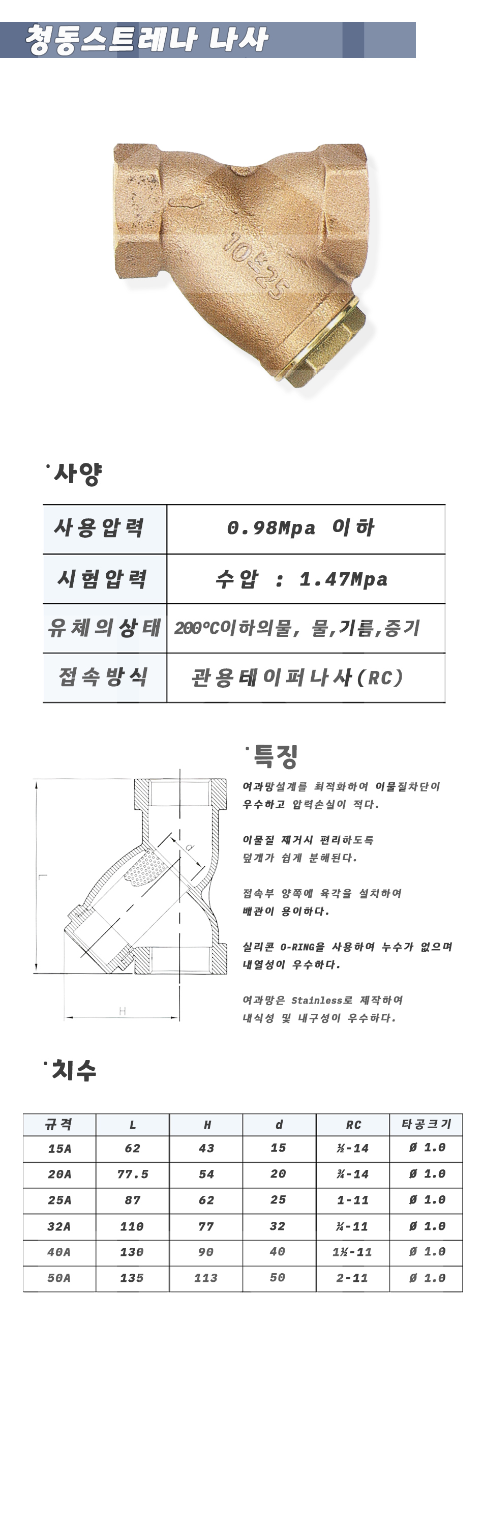001-35-01-00000015 청동 스트레나 나사 판매가 17,400 ~ 원 배송방법 일반배송 브랜드 제조사 상품옵션 품명 옵션코드 규격 중량 판매단위 회원가 수량 청동 스트레나 나사 001-35-01-00000015 15A 0.4kg (400g) 0 17,400원 - + 청동 스트레나 나사 001-35-01-00000020 20A 0.5kg (500g) 0 23,000원 - + 청동 스트레나 나사 001-35-01-00000025 25A 1.0kg (1,000g) 0 30,900원 - + 청동 스트레나 나사 001-35-01-00000032 32A 1.4kg (1,400g) 0 43,100원 - + 청동 스트레나 나사 001-35-01-00000040 40A 1.8kg (1,800g) 0 61,000원 - + 청동 스트레나 나사 001-35-01-00000050 50A 2.4kg (2,400g) 0 86,000원 - + 총 상품 금액(VAT포함) 원 회원 / 비회원 구매하기 상품담기 제품상세정보 상품문의 (0) 배송 안내 반품/교환 안내 청동 스트레나밸브 상품 문의하기 배송안내 배송 안내 일반제품 당일 1시 이전 주문시 재고 여부에 따라 당일발송 재고 부족시 2~3일 소요 파손위험제품 (화물택배/차량배송) 파손위험이 큰 제품은 빠렛트로 포장되어 차량으로 이동됩니다. 고객님이 지정한 장소와 가장 가까운 차량접근이 가능한 도로까지만 배송 주문물량 및 제품의 특성에 따라 화물, 화물택배. 합짐차량. 단독차량으로 고객님의 요청에 따라 운송 차량 지정 제품 하차시 파손이 있을 수 있으므로, 꼭 하차전 제품을 확인 고객센터 고객 센터 010-6539-7900 상담시간 오전 09시 ~ 오후 6시 점심 : 12:00 ~ 13:00 / 휴일 : 토, 일요일, 공휴일 반품/교환 안내 제품의 하자 및 오배송은 문의 주시면 즉시 처리해드리겠습니다. 반품/교환 판매자 지정택배사 : CJ대한통운 반품배송비(편도) : 3,000원 교환배송비(왕복) : 6,000원 보내실 곳 : 전라북도 전주시 완산구 콩쥐팥쥐로 1570 * 반품/교환 사유에 따른 요청 가능 기간 구매자 단순 변심 : 상품수령후 7일이내(구매자 반품 배송비 부담) 반품/교환 불가능 사유 교환/반품 요청 기간이 지난 경우 소비자의 책임 있는 사유로 상품 등이 분실/파손/훼손된 경우 소비자의 사용/소비에 의해 상품 등의 가치가 현저히 감소한 경우 제품을 설치 또는 장착하였을 경우 주문제작 상품중 상품제작에 들어간 경우 제품을 하차 또는 시공 후의 공정과정에서 일어난 파손의 경우 교환 반품시 고객 부담 배송비를 지불하지 아니한 경우 * 펌프제품은 미사용, 포장박스 미훼손 시에만 교환/반품이 가능합니다. 고객센터 고객 센터 010-6539-7900 상담시간 오전 09시 ~ 오후 6시 점심 : 12:00 ~ 13:00 / 휴일 : 토, 일요일, 공휴일