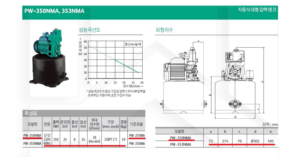 100-12-13-00000350 가정용소형, 자동식대형압력탱크 PW-350NMA 판매가 264,000 ~ 원 배송방법 일반배송 브랜드 제조사 윌로펌프 주식회사 상품옵션 품명 옵션코드 규격 중량 판매단위 회원가 수량 PW-350NMA 100-12-13-00000350 25A 19.0kg (19,000g) 0 264,000원 - + PW-353NMA 100-12-13-00000353 32A 19.0kg (19,000g) 0 264,000원 - + 총 상품 금액(VAT포함) 원 회원 / 비회원 구매하기 상품담기 제품상세정보 상품문의 (0) 배송 안내 반품/교환 안내 자동식 대형 압력 탱크 상품 문의하기 배송안내 배송 안내 일반제품 당일 1시 이전 주문시 재고 여부에 따라 당일발송 재고 부족시 2~3일 소요 파손위험제품 (화물택배/차량배송) 파손위험이 큰 제품은 빠렛트로 포장되어 차량으로 이동됩니다. 고객님이 지정한 장소와 가장 가까운 차량접근이 가능한 도로까지만 배송 주문물량 및 제품의 특성에 따라 화물, 화물택배. 합짐차량. 단독차량으로 고객님의 요청에 따라 운송 차량 지정 제품 하차시 파손이 있을 수 있으므로, 꼭 하차전 제품을 확인 고객센터 고객 센터 010-6539-7900 상담시간 오전 09시 ~ 오후 6시 점심 : 12:00 ~ 13:00 / 휴일 : 토, 일요일, 공휴일 반품/교환 안내 제품의 하자 및 오배송은 문의 주시면 즉시 처리해드리겠습니다. 반품/교환 판매자 지정택배사 : CJ대한통운 반품배송비(편도) : 3,000원 교환배송비(왕복) : 6,000원 보내실 곳 : 전라북도 전주시 완산구 콩쥐팥쥐로 1570 * 반품/교환 사유에 따른 요청 가능 기간 구매자 단순 변심 : 상품수령후 7일이내(구매자 반품 배송비 부담) 반품/교환 불가능 사유 교환/반품 요청 기간이 지난 경우 소비자의 책임 있는 사유로 상품 등이 분실/파손/훼손된 경우 소비자의 사용/소비에 의해 상품 등의 가치가 현저히 감소한 경우 제품을 설치 또는 장착하였을 경우 주문제작 상품중 상품제작에 들어간 경우 제품을 하차 또는 시공 후의 공정과정에서 일어난 파손의 경우 교환 반품시 고객 부담 배송비를 지불하지 아니한 경우 * 펌프제품은 미사용, 포장박스 미훼손 시에만 교환/반품이 가능합니다. 고객센터 고객 센터 010-6539-7900 상담시간 오전 09시 ~ 오후 6시 점심 : 12:00 ~ 13:00 / 휴일 : 토, 일요일, 공휴일
