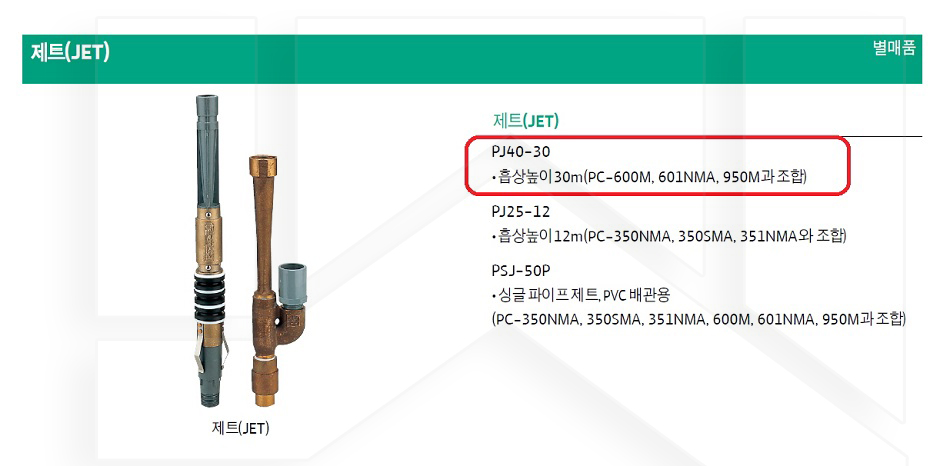 100-45-11-00014030 깊은우물용, 제트JET, 흡상30M PJ40-30 판매가 83,000 ~ 원 배송방법 일반배송 브랜드 제조사 윌로펌프 주식회사 상품옵션 품명 옵션코드 규격 중량 판매단위 회원가 수량 PJ25-12 100-45-11-00002512 350NMA,350SMA,351NMA 0.0kg (0g) 0 10,000원 - + PSJ-50P 100-45-11-00005000 0.0kg (0g) 0 56,000원 - + PJ40-30 100-45-11-00014030 600M,601NMA,950M 0.0kg (0g) 0 83,000원 - + 총 상품 금액(VAT포함) 원 회원 / 비회원 구매하기 상품담기 제품상세정보 상품문의 (0) 배송 안내 반품/교환 안내 제트 상품 문의하기 배송안내 배송 안내 일반제품 당일 1시 이전 주문시 재고 여부에 따라 당일발송 재고 부족시 2~3일 소요 파손위험제품 (화물택배/차량배송) 파손위험이 큰 제품은 빠렛트로 포장되어 차량으로 이동됩니다. 고객님이 지정한 장소와 가장 가까운 차량접근이 가능한 도로까지만 배송 주문물량 및 제품의 특성에 따라 화물, 화물택배. 합짐차량. 단독차량으로 고객님의 요청에 따라 운송 차량 지정 제품 하차시 파손이 있을 수 있으므로, 꼭 하차전 제품을 확인 고객센터 고객 센터 010-6539-7900 상담시간 오전 09시 ~ 오후 6시 점심 : 12:00 ~ 13:00 / 휴일 : 토, 일요일, 공휴일 반품/교환 안내 제품의 하자 및 오배송은 문의 주시면 즉시 처리해드리겠습니다. 반품/교환 판매자 지정택배사 : CJ대한통운 반품배송비(편도) : 3,000원 교환배송비(왕복) : 6,000원 보내실 곳 : 전라북도 전주시 완산구 콩쥐팥쥐로 1570 * 반품/교환 사유에 따른 요청 가능 기간 구매자 단순 변심 : 상품수령후 7일이내(구매자 반품 배송비 부담) 반품/교환 불가능 사유 교환/반품 요청 기간이 지난 경우 소비자의 책임 있는 사유로 상품 등이 분실/파손/훼손된 경우 소비자의 사용/소비에 의해 상품 등의 가치가 현저히 감소한 경우 제품을 설치 또는 장착하였을 경우 주문제작 상품중 상품제작에 들어간 경우 제품을 하차 또는 시공 후의 공정과정에서 일어난 파손의 경우 교환 반품시 고객 부담 배송비를 지불하지 아니한 경우 * 펌프제품은 미사용, 포장박스 미훼손 시에만 교환/반품이 가능합니다. 고객센터 고객 센터 010-6539-7900 상담시간 오전 09시 ~ 오후 6시 점심 : 12:00 ~ 13:00 / 휴일 : 토, 일요일, 공휴일