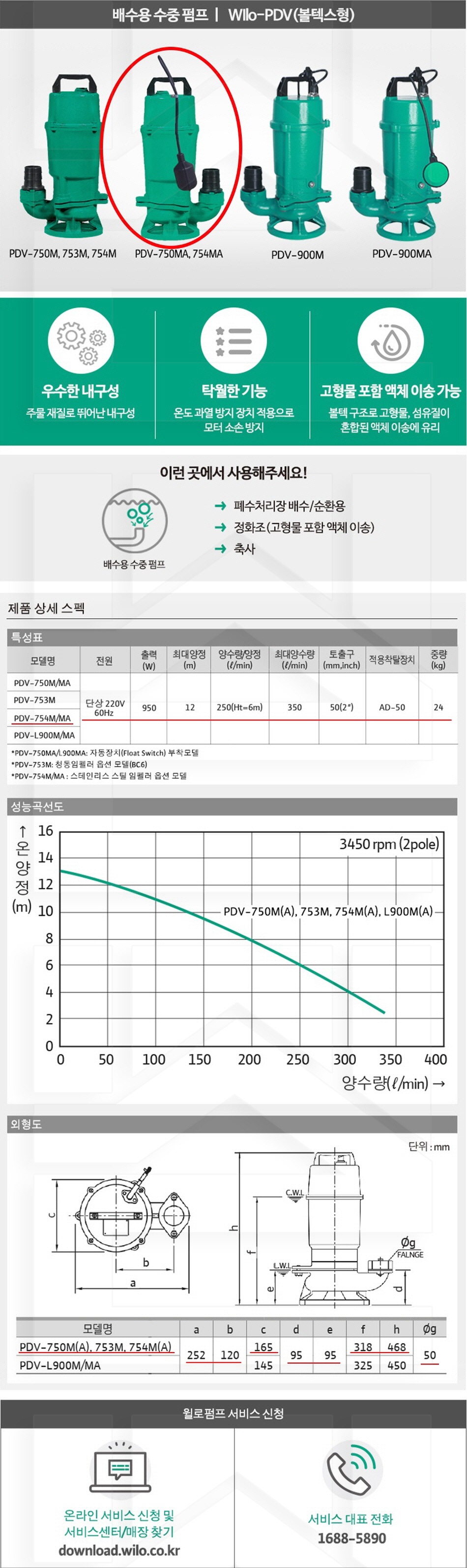 100-62-11-00000754 오수자동 PDV-754MA 판매가 494,000 ~ 원 배송방법 일반배송 브랜드 제조사 윌로펌프 주식회사 상품옵션 품명 옵션코드 규격 중량 판매단위 회원가 수량 PDV-300MA 100-62-11-00000300 32A 13.0kg (13,000g) 0 219,000원 - + PDV-400MA 100-62-11-00000400 50A 20.0kg (20,000g) 0 344,000원 - + PDV-750MA, PDV-950MA 100-62-11-00000750 50A 24.0kg (24,000g) 0 417,000원 - + PDV-754MA 100-62-11-00000754 50A 24.0kg (24,000g) 0 494,000원 - + 총 상품 금액(VAT포함) 원 회원 / 비회원 구매하기 상품담기 제품상세정보 상품문의 (0) 배송 안내 반품/교환 안내 배수용 수중 펌프 볼텍스형 상품 문의하기 배송안내 배송 안내 일반제품 당일 1시 이전 주문시 재고 여부에 따라 당일발송 재고 부족시 2~3일 소요 파손위험제품 (화물택배/차량배송) 파손위험이 큰 제품은 빠렛트로 포장되어 차량으로 이동됩니다. 고객님이 지정한 장소와 가장 가까운 차량접근이 가능한 도로까지만 배송 주문물량 및 제품의 특성에 따라 화물, 화물택배. 합짐차량. 단독차량으로 고객님의 요청에 따라 운송 차량 지정 제품 하차시 파손이 있을 수 있으므로, 꼭 하차전 제품을 확인 고객센터 고객 센터 010-6539-7900 상담시간 오전 09시 ~ 오후 6시 점심 : 12:00 ~ 13:00 / 휴일 : 토, 일요일, 공휴일 반품/교환 안내 제품의 하자 및 오배송은 문의 주시면 즉시 처리해드리겠습니다. 반품/교환 판매자 지정택배사 : CJ대한통운 반품배송비(편도) : 3,000원 교환배송비(왕복) : 6,000원 보내실 곳 : 전라북도 전주시 완산구 콩쥐팥쥐로 1570 * 반품/교환 사유에 따른 요청 가능 기간 구매자 단순 변심 : 상품수령후 7일이내(구매자 반품 배송비 부담) 반품/교환 불가능 사유 교환/반품 요청 기간이 지난 경우 소비자의 책임 있는 사유로 상품 등이 분실/파손/훼손된 경우 소비자의 사용/소비에 의해 상품 등의 가치가 현저히 감소한 경우 제품을 설치 또는 장착하였을 경우 주문제작 상품중 상품제작에 들어간 경우 제품을 하차 또는 시공 후의 공정과정에서 일어난 파손의 경우 교환 반품시 고객 부담 배송비를 지불하지 아니한 경우 * 펌프제품은 미사용, 포장박스 미훼손 시에만 교환/반품이 가능합니다. 고객센터 고객 센터 010-6539-7900 상담시간 오전 09시 ~ 오후 6시 점심 : 12:00 ~ 13:00 / 휴일 : 토, 일요일, 공휴일