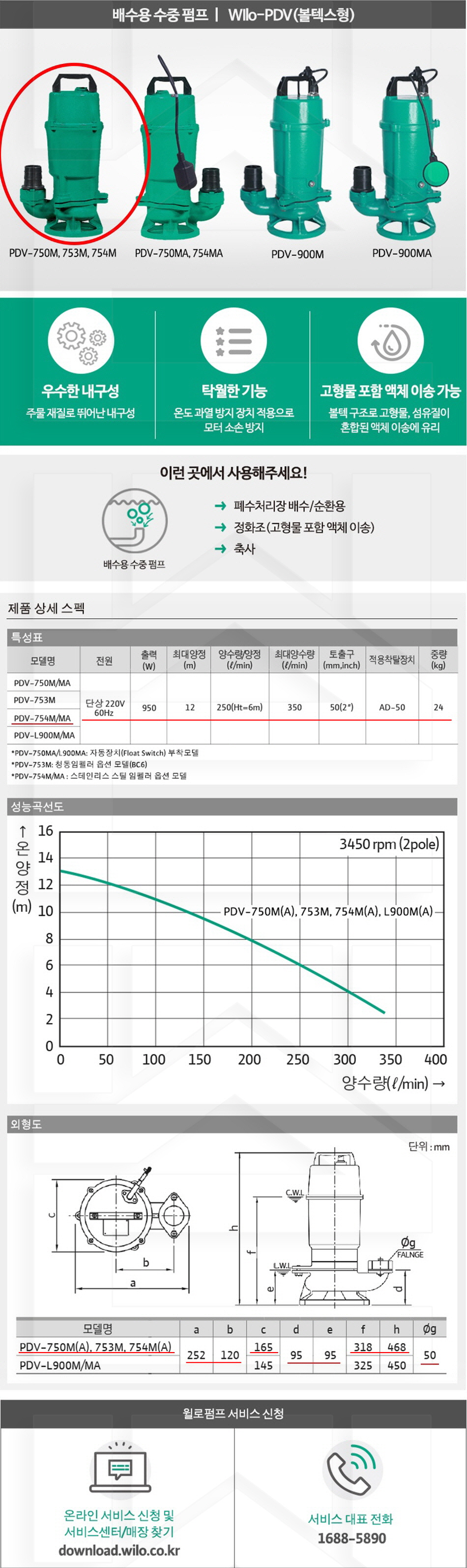100-62-13-00000754 오수비자동 PDV-754M 스텐임펠러 판매가 464,000 ~ 원 배송방법 일반배송 브랜드 제조사 윌로펌프 주식회사 상품옵션 품명 옵션코드 규격 중량 판매단위 회원가 수량 PDV-300M 100-62-13-00000300 32A 13.0kg (13,000g) 0 207,000원 - + PDV-400M 100-62-13-00000400 50A 19.0kg (19,000g) 0 323,000원 - + PDV-750M, PDV-950M 100-62-13-00000750 50A 24.0kg (24,000g) 0 393,000원 - + PDV-753M 청동임펠러 100-62-13-00000753 50A 24.0kg (24,000g) 0 409,000원 - + PDV-754M 스텐임펠러 100-62-13-00000754 50A 24.0kg (24,000g) 0 464,000원 - + 총 상품 금액(VAT포함) 원 회원 / 비회원 구매하기 상품담기 제품상세정보 상품문의 (0) 배송 안내 반품/교환 안내 배수용 수중 펌프 볼텍스형 상품 문의하기 배송안내 배송 안내 일반제품 당일 1시 이전 주문시 재고 여부에 따라 당일발송 재고 부족시 2~3일 소요 파손위험제품 (화물택배/차량배송) 파손위험이 큰 제품은 빠렛트로 포장되어 차량으로 이동됩니다. 고객님이 지정한 장소와 가장 가까운 차량접근이 가능한 도로까지만 배송 주문물량 및 제품의 특성에 따라 화물, 화물택배. 합짐차량. 단독차량으로 고객님의 요청에 따라 운송 차량 지정 제품 하차시 파손이 있을 수 있으므로, 꼭 하차전 제품을 확인 고객센터 고객 센터 010-6539-7900 상담시간 오전 09시 ~ 오후 6시 점심 : 12:00 ~ 13:00 / 휴일 : 토, 일요일, 공휴일 반품/교환 안내 제품의 하자 및 오배송은 문의 주시면 즉시 처리해드리겠습니다. 반품/교환 판매자 지정택배사 : CJ대한통운 반품배송비(편도) : 3,000원 교환배송비(왕복) : 6,000원 보내실 곳 : 전라북도 전주시 완산구 콩쥐팥쥐로 1570 * 반품/교환 사유에 따른 요청 가능 기간 구매자 단순 변심 : 상품수령후 7일이내(구매자 반품 배송비 부담) 반품/교환 불가능 사유 교환/반품 요청 기간이 지난 경우 소비자의 책임 있는 사유로 상품 등이 분실/파손/훼손된 경우 소비자의 사용/소비에 의해 상품 등의 가치가 현저히 감소한 경우 제품을 설치 또는 장착하였을 경우 주문제작 상품중 상품제작에 들어간 경우 제품을 하차 또는 시공 후의 공정과정에서 일어난 파손의 경우 교환 반품시 고객 부담 배송비를 지불하지 아니한 경우 * 펌프제품은 미사용, 포장박스 미훼손 시에만 교환/반품이 가능합니다. 고객센터 고객 센터 010-6539-7900 상담시간 오전 09시 ~ 오후 6시 점심 : 12:00 ~ 13:00 / 휴일 : 토, 일요일, 공휴일