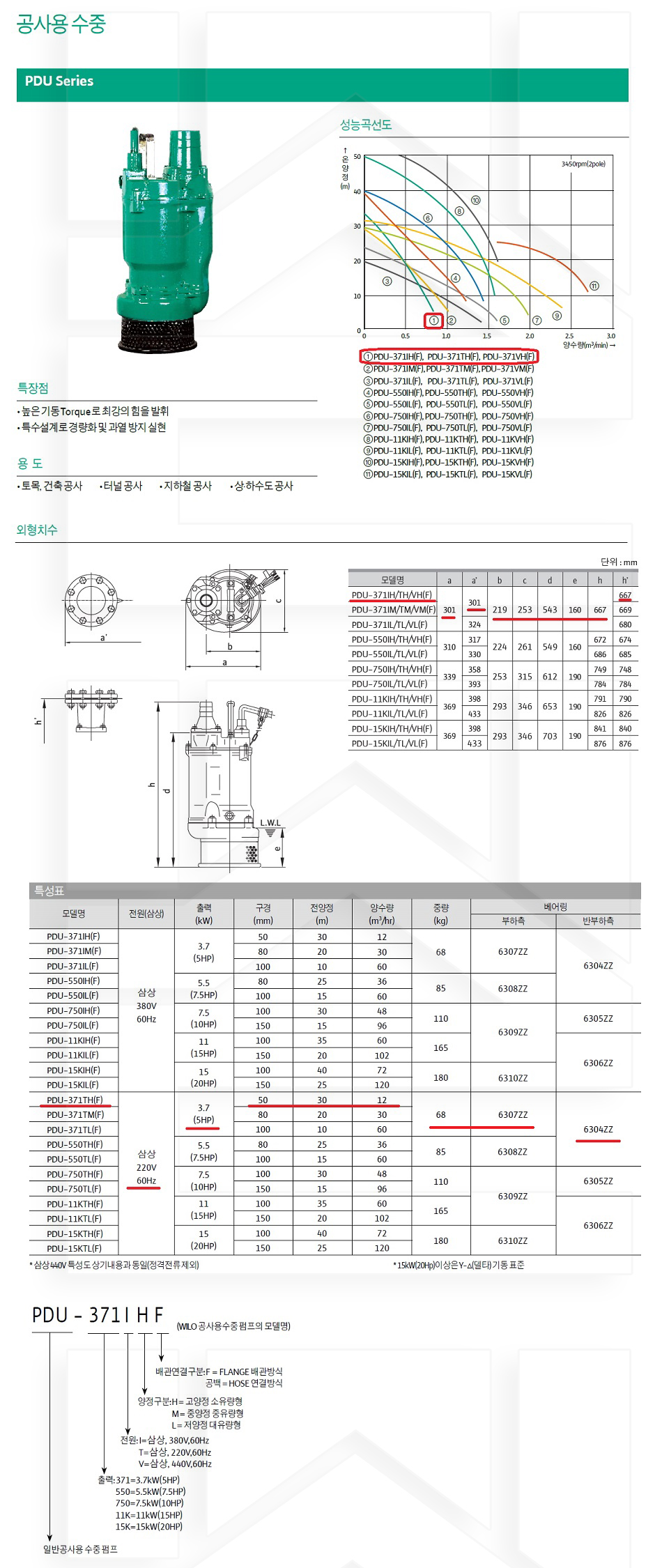 100-71-11-00000371 공사용수중 삼상220 고양정소유량 PDU-371TH 판매가 1,138,000 ~ 원 배송방법 일반배송 브랜드 제조사 윌로펌프 주식회사 상품옵션 품명 옵션코드 규격 중량 판매단위 회원가 수량 PDU-371TH 100-71-11-00000371 50A 68.0kg (68,000g) 0 1,138,000원 - + PDU-750TH 100-71-11-00000750 100A 110.0kg (110,000g) 0 1,922,000원 - + PDU-15KTH 100-71-11-00150000 100A 180.0kg (180,000g) 0 3,062,000원 - + 총 상품 금액(VAT포함) 원 회원 / 비회원 구매하기 상품담기 제품상세정보 상품문의 (0) 배송 안내 반품/교환 안내 공사용 수중 펌프 상품 문의하기 배송안내 배송 안내 일반제품 당일 1시 이전 주문시 재고 여부에 따라 당일발송 재고 부족시 2~3일 소요 파손위험제품 (화물택배/차량배송) 파손위험이 큰 제품은 빠렛트로 포장되어 차량으로 이동됩니다. 고객님이 지정한 장소와 가장 가까운 차량접근이 가능한 도로까지만 배송 주문물량 및 제품의 특성에 따라 화물, 화물택배. 합짐차량. 단독차량으로 고객님의 요청에 따라 운송 차량 지정 제품 하차시 파손이 있을 수 있으므로, 꼭 하차전 제품을 확인 고객센터 고객 센터 010-6539-7900 상담시간 오전 09시 ~ 오후 6시 점심 : 12:00 ~ 13:00 / 휴일 : 토, 일요일, 공휴일 반품/교환 안내 제품의 하자 및 오배송은 문의 주시면 즉시 처리해드리겠습니다. 반품/교환 판매자 지정택배사 : CJ대한통운 반품배송비(편도) : 3,000원 교환배송비(왕복) : 6,000원 보내실 곳 : 전라북도 전주시 완산구 콩쥐팥쥐로 1570 * 반품/교환 사유에 따른 요청 가능 기간 구매자 단순 변심 : 상품수령후 7일이내(구매자 반품 배송비 부담) 반품/교환 불가능 사유 교환/반품 요청 기간이 지난 경우 소비자의 책임 있는 사유로 상품 등이 분실/파손/훼손된 경우 소비자의 사용/소비에 의해 상품 등의 가치가 현저히 감소한 경우 제품을 설치 또는 장착하였을 경우 주문제작 상품중 상품제작에 들어간 경우 제품을 하차 또는 시공 후의 공정과정에서 일어난 파손의 경우 교환 반품시 고객 부담 배송비를 지불하지 아니한 경우 * 펌프제품은 미사용, 포장박스 미훼손 시에만 교환/반품이 가능합니다. 고객센터 고객 센터 010-6539-7900 상담시간 오전 09시 ~ 오후 6시 점심 : 12:00 ~ 13:00 / 휴일 : 토, 일요일, 공휴일