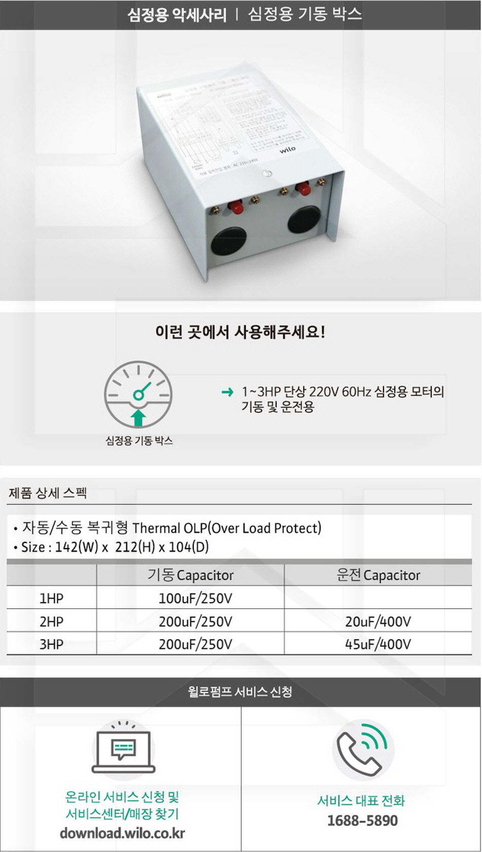 101-14-11-00001012 심정용기동박스 CB-1012S 판매가 84,000 ~ 원 배송방법 일반배송 브랜드 제조사 윌로펌프 주식회사 상품옵션 품명 옵션코드 규격 중량 판매단위 회원가 수량 CB-1012S 101-14-11-00001012 0.0kg (0g) 0 84,000원 - + CB-2012S 101-14-11-00002012 0.0kg (0g) 0 126,000원 - + CB-3012S 101-14-11-00003012 0.0kg (0g) 0 143,000원 - + 총 상품 금액(VAT포함) 원 회원 / 비회원 구매하기 상품담기 제품상세정보 상품문의 (0) 배송 안내 반품/교환 안내 심정용 펌프 기동 박스 액세서리 상품 문의하기 배송안내 배송 안내 일반제품 당일 1시 이전 주문시 재고 여부에 따라 당일발송 재고 부족시 2~3일 소요 파손위험제품 (화물택배/차량배송) 파손위험이 큰 제품은 빠렛트로 포장되어 차량으로 이동됩니다. 고객님이 지정한 장소와 가장 가까운 차량접근이 가능한 도로까지만 배송 주문물량 및 제품의 특성에 따라 화물, 화물택배. 합짐차량. 단독차량으로 고객님의 요청에 따라 운송 차량 지정 제품 하차시 파손이 있을 수 있으므로, 꼭 하차전 제품을 확인 고객센터 고객 센터 010-6539-7900 상담시간 오전 09시 ~ 오후 6시 점심 : 12:00 ~ 13:00 / 휴일 : 토, 일요일, 공휴일 반품/교환 안내 제품의 하자 및 오배송은 문의 주시면 즉시 처리해드리겠습니다. 반품/교환 판매자 지정택배사 : CJ대한통운 반품배송비(편도) : 3,000원 교환배송비(왕복) : 6,000원 보내실 곳 : 전라북도 전주시 완산구 콩쥐팥쥐로 1570 * 반품/교환 사유에 따른 요청 가능 기간 구매자 단순 변심 : 상품수령후 7일이내(구매자 반품 배송비 부담) 반품/교환 불가능 사유 교환/반품 요청 기간이 지난 경우 소비자의 책임 있는 사유로 상품 등이 분실/파손/훼손된 경우 소비자의 사용/소비에 의해 상품 등의 가치가 현저히 감소한 경우 제품을 설치 또는 장착하였을 경우 주문제작 상품중 상품제작에 들어간 경우 제품을 하차 또는 시공 후의 공정과정에서 일어난 파손의 경우 교환 반품시 고객 부담 배송비를 지불하지 아니한 경우 * 펌프제품은 미사용, 포장박스 미훼손 시에만 교환/반품이 가능합니다. 고객센터 고객 센터 010-6539-7900 상담시간 오전 09시 ~ 오후 6시 점심 : 12:00 ~ 13:00 / 휴일 : 토, 일요일, 공휴일