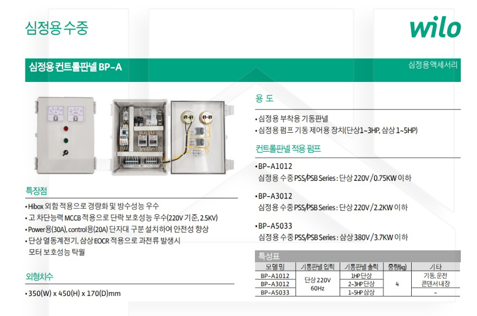 101-14-15-00001012 심정용컨트롤판넬 BP-A1012 판매가 215,000 ~ 원 배송방법 일반배송 브랜드 제조사 윌로펌프 주식회사 상품옵션 품명 옵션코드 규격 중량 판매단위 회원가 수량 BP-A1012 101-14-15-00001012 4.0kg (4,000g) 0 215,000원 - + BP-A3012 101-14-15-00003012 4.0kg (4,000g) 0 241,000원 - + BP-A5033 101-14-15-00005033 4.0kg (4,000g) 0 259,000원 - + 총 상품 금액(VAT포함) 원 회원 / 비회원 구매하기 상품담기 제품상세정보 상품문의 (0) 배송 안내 반품/교환 안내 심정용 수중 펌프 컨트롤판넬 액세서리 상품 문의하기 배송안내 배송 안내 일반제품 당일 1시 이전 주문시 재고 여부에 따라 당일발송 재고 부족시 2~3일 소요 파손위험제품 (화물택배/차량배송) 파손위험이 큰 제품은 빠렛트로 포장되어 차량으로 이동됩니다. 고객님이 지정한 장소와 가장 가까운 차량접근이 가능한 도로까지만 배송 주문물량 및 제품의 특성에 따라 화물, 화물택배. 합짐차량. 단독차량으로 고객님의 요청에 따라 운송 차량 지정 제품 하차시 파손이 있을 수 있으므로, 꼭 하차전 제품을 확인 고객센터 고객 센터 010-6539-7900 상담시간 오전 09시 ~ 오후 6시 점심 : 12:00 ~ 13:00 / 휴일 : 토, 일요일, 공휴일 반품/교환 안내 제품의 하자 및 오배송은 문의 주시면 즉시 처리해드리겠습니다. 반품/교환 판매자 지정택배사 : CJ대한통운 반품배송비(편도) : 3,000원 교환배송비(왕복) : 6,000원 보내실 곳 : 전라북도 전주시 완산구 콩쥐팥쥐로 1570 * 반품/교환 사유에 따른 요청 가능 기간 구매자 단순 변심 : 상품수령후 7일이내(구매자 반품 배송비 부담) 반품/교환 불가능 사유 교환/반품 요청 기간이 지난 경우 소비자의 책임 있는 사유로 상품 등이 분실/파손/훼손된 경우 소비자의 사용/소비에 의해 상품 등의 가치가 현저히 감소한 경우 제품을 설치 또는 장착하였을 경우 주문제작 상품중 상품제작에 들어간 경우 제품을 하차 또는 시공 후의 공정과정에서 일어난 파손의 경우 교환 반품시 고객 부담 배송비를 지불하지 아니한 경우 * 펌프제품은 미사용, 포장박스 미훼손 시에만 교환/반품이 가능합니다. 고객센터 고객 센터 010-6539-7900 상담시간 오전 09시 ~ 오후 6시 점심 : 12:00 ~ 13:00 / 휴일 : 토, 일요일, 공휴일