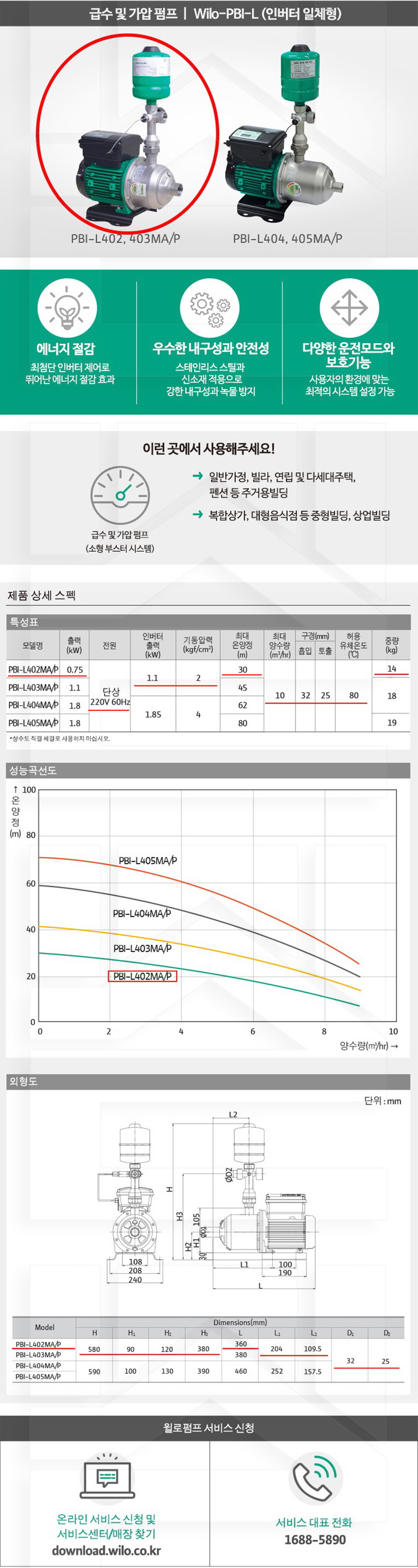 101-32-12-00000402 인버터 일체형펌프 PBI-L시리즈 PBI-L402MA/P (0.75W) 판매가 1,016,000 ~ 원 배송방법 일반배송 브랜드 제조사 윌로펌프 주식회사 상품옵션 품명 옵션코드 규격 중량 판매단위 회원가 수량 PBI-L203MA/P (0.75W) 101-32-12-00000203 25A 16.0kg (16,000g) 0 1,016,000원 - + PBI-L205MA/P(1.1W) 101-32-12-00000205 25A 17.0kg (17,000g) 0 1,098,000원 - + PBI-L402MA/P (0.75W) 101-32-12-00000402 32/25A 14.0kg (14,000g) 0 1,016,000원 - + PBI-L403MA/P (1.1W) 101-32-12-00000403 32/25A 18.0kg (18,000g) 0 1,098,000원 - + PBI-L404MA/P (1.5W) 101-32-12-00000404 32/25A 18.0kg (18,000g) 0 1,150,000원 - + PBI-L405MA/P (1.85W) 101-32-12-00000405 32/25A 19.0kg (19,000g) 0 1,361,000원 - + PBI-L802MA/P (1.5W) 101-32-12-00000802 40/32A 19.0kg (19,000g) 0 1,295,000원 - + PBI-L803MA/P (1.85W) 101-32-12-00000803 40/32A 20.0kg (20,000g) 0 1,472,000원 - + 총 상품 금액(VAT포함) 원 회원 / 비회원 구매하기 상품담기 제품상세정보 상품문의 (0) 배송 안내 반품/교환 안내 급수 가압 펌프 인버터 일체형 상품 문의하기 배송안내 배송 안내 일반제품 당일 1시 이전 주문시 재고 여부에 따라 당일발송 재고 부족시 2~3일 소요 파손위험제품 (화물택배/차량배송) 파손위험이 큰 제품은 빠렛트로 포장되어 차량으로 이동됩니다. 고객님이 지정한 장소와 가장 가까운 차량접근이 가능한 도로까지만 배송 주문물량 및 제품의 특성에 따라 화물, 화물택배. 합짐차량. 단독차량으로 고객님의 요청에 따라 운송 차량 지정 제품 하차시 파손이 있을 수 있으므로, 꼭 하차전 제품을 확인 고객센터 고객 센터 010-6539-7900 상담시간 오전 09시 ~ 오후 6시 점심 : 12:00 ~ 13:00 / 휴일 : 토, 일요일, 공휴일 반품/교환 안내 제품의 하자 및 오배송은 문의 주시면 즉시 처리해드리겠습니다. 반품/교환 판매자 지정택배사 : CJ대한통운 반품배송비(편도) : 3,000원 교환배송비(왕복) : 6,000원 보내실 곳 : 전라북도 전주시 완산구 콩쥐팥쥐로 1570 * 반품/교환 사유에 따른 요청 가능 기간 구매자 단순 변심 : 상품수령후 7일이내(구매자 반품 배송비 부담) 반품/교환 불가능 사유 교환/반품 요청 기간이 지난 경우 소비자의 책임 있는 사유로 상품 등이 분실/파손/훼손된 경우 소비자의 사용/소비에 의해 상품 등의 가치가 현저히 감소한 경우 제품을 설치 또는 장착하였을 경우 주문제작 상품중 상품제작에 들어간 경우 제품을 하차 또는 시공 후의 공정과정에서 일어난 파손의 경우 교환 반품시 고객 부담 배송비를 지불하지 아니한 경우 * 펌프제품은 미사용, 포장박스 미훼손 시에만 교환/반품이 가능합니다. 고객센터 고객 센터 010-6539-7900 상담시간 오전 09시 ~ 오후 6시 점심 : 12:00 ~ 13:00 / 휴일 : 토, 일요일, 공휴일