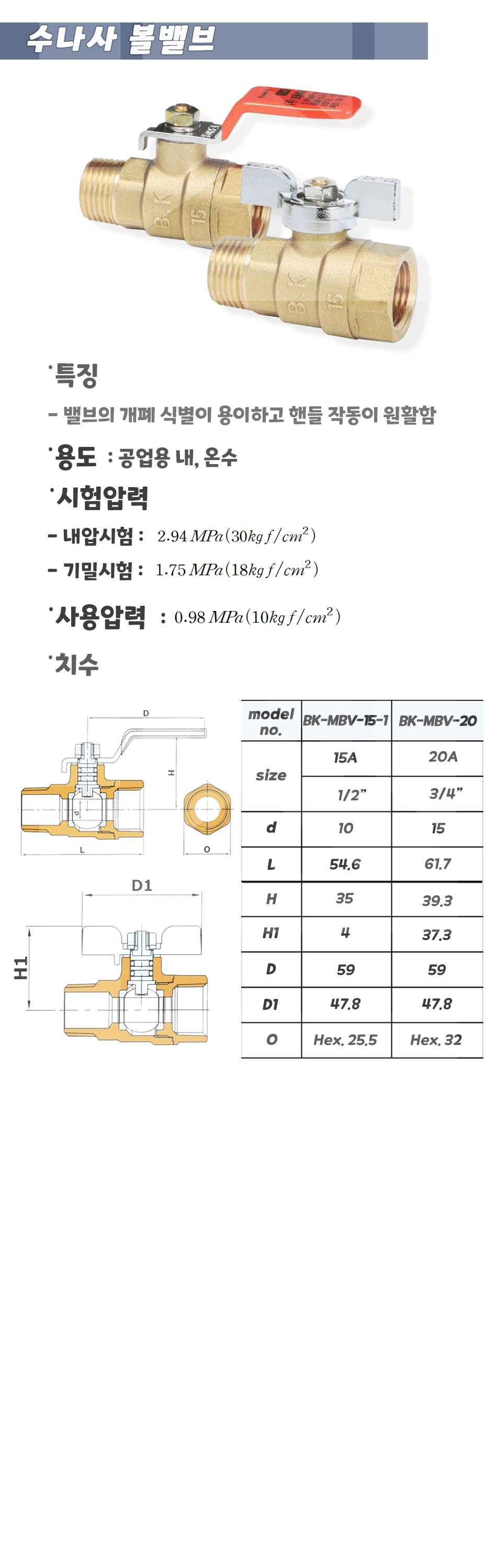 001-23-01-00000020 황동 레바볼밸브(M*F) 판매가 11,370 ~ 원 배송방법 일반배송 브랜드 제조사 상품옵션 품명 옵션코드 규격 중량 판매단위 회원가 수량 황동 레바볼밸브(M*F) 001-23-01-00000015 15A 0.2kg (150g) 0 7,780원 - + 황동 레바볼밸브(M*F) 001-23-01-00000020 20A 0.2kg (230g) 0 11,370원 - + 황동 레바볼밸브(M*F) 001-23-01-00000025 25A 0.3kg (340g) 0 17,530원 - + 황동 레바볼밸브(M*F) 001-23-01-00000032 32A 0.5kg (450g) 0 26,570원 - + 황동 레바볼밸브(M*F) 001-23-01-00000040 40A 0.8kg (780g) 0 43,270원 - + 황동 레바볼밸브(M*F) 001-23-01-00000050 50A 1.2kg (1,170g) 0 67,700원 - + 총 상품 금액(VAT포함) 원 회원 / 비회원 구매하기 상품담기 제품상세정보 상품문의 (0) 배송 안내 반품/교환 안내 황동 레바 볼밸브 (M*F) 상품 문의하기 배송안내 배송 안내 일반제품 당일 1시 이전 주문시 재고 여부에 따라 당일발송 재고 부족시 2~3일 소요 파손위험제품 (화물택배/차량배송) 파손위험이 큰 제품은 빠렛트로 포장되어 차량으로 이동됩니다. 고객님이 지정한 장소와 가장 가까운 차량접근이 가능한 도로까지만 배송 주문물량 및 제품의 특성에 따라 화물, 화물택배. 합짐차량. 단독차량으로 고객님의 요청에 따라 운송 차량 지정 제품 하차시 파손이 있을 수 있으므로, 꼭 하차전 제품을 확인 고객센터 고객 센터 010-6539-7900 상담시간 오전 09시 ~ 오후 6시 점심 : 12:00 ~ 13:00 / 휴일 : 토, 일요일, 공휴일 반품/교환 안내 제품의 하자 및 오배송은 문의 주시면 즉시 처리해드리겠습니다. 반품/교환 판매자 지정택배사 : CJ대한통운 반품배송비(편도) : 3,000원 교환배송비(왕복) : 6,000원 보내실 곳 : 전라북도 전주시 완산구 콩쥐팥쥐로 1570 * 반품/교환 사유에 따른 요청 가능 기간 구매자 단순 변심 : 상품수령후 7일이내(구매자 반품 배송비 부담) 반품/교환 불가능 사유 교환/반품 요청 기간이 지난 경우 소비자의 책임 있는 사유로 상품 등이 분실/파손/훼손된 경우 소비자의 사용/소비에 의해 상품 등의 가치가 현저히 감소한 경우 제품을 설치 또는 장착하였을 경우 주문제작 상품중 상품제작에 들어간 경우 제품을 하차 또는 시공 후의 공정과정에서 일어난 파손의 경우 교환 반품시 고객 부담 배송비를 지불하지 아니한 경우 * 펌프제품은 미사용, 포장박스 미훼손 시에만 교환/반품이 가능합니다. 고객센터 고객 센터 010-6539-7900 상담시간 오전 09시 ~ 오후 6시 점심 : 12:00 ~ 13:00 / 휴일 : 토, 일요일, 공휴일